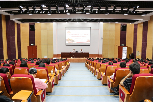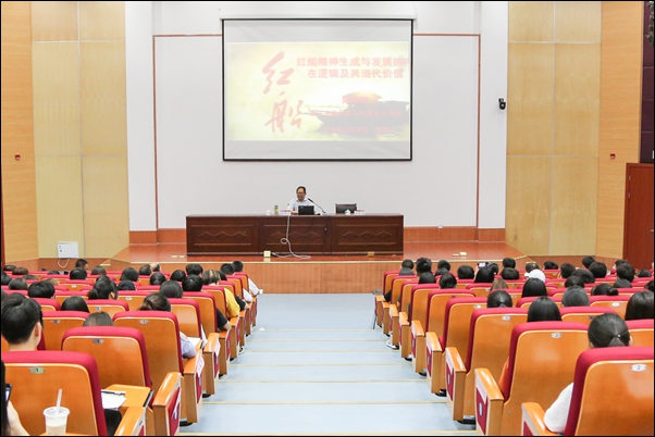 浙江省“红船精神”宣讲团成员、浙江工商大学马克思主义学院院长陈华兴教授为师生作“学习新思想 千万师生同上一堂课”——红船精神宣讲报告。陈教授从“红船精神”的产生和提出、“红船精神”的生成和发展逻辑、“红船精神”昭示着中国共产党人的“初心、“红船精神”是中国革命精神之源 、“红船精神”的时代价值等五个方面详细解读了“红船精神”,并结合实际,用生动案例诠释了新时代师生党员如何更好立身与学习。