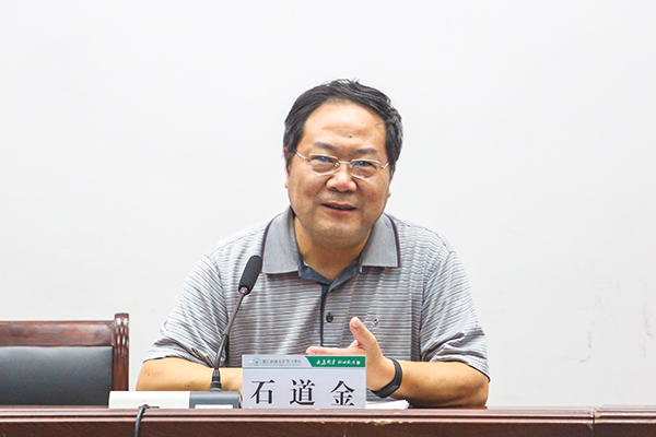 院长石道金在大会上作了题为《以战斗的姿态、必胜的信心,全面推进应用型创业人才培养和应用型院校建设》的讲话,深入分析了学院内涵发展面临的挑战机遇和战略抉择,强调谋发展时不我待,重实干只争朝夕,全体教职工,特别是干部们要努力一把,干一把,全面推进硕士点培育工作,奋力夺取学院内涵发展新胜利。