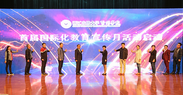 与会领导与嘉宾共同启动了学院首届国际化教育宣传月活动。