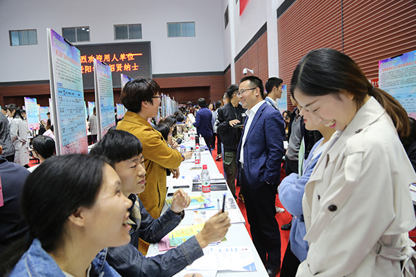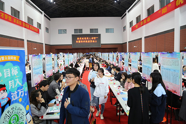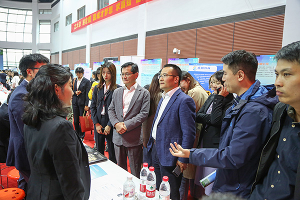 11月2日下午,由学院学工部、中共诸暨市委组织部、诸暨市人力资源和社会保障局联合举办的“魅力暨阳,创业创新”2019届毕业生校园招聘会在学院网球馆举行。学院党委书记潘国忠、副书记高国俊到招聘会现场指导工作。