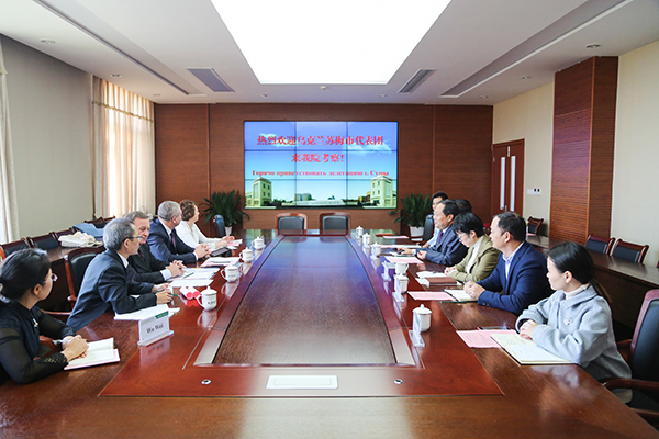 11月9日,苏梅市副市长Volodymyr Voitenko,苏梅市金融、经济和投资部副主任Larysa Skyrtach及苏梅国立农业大学副校长Mykola Sokolov在诸暨市外事办副主任吴伟的陪同下来访学院。石道金院长、李文莉副院长热情接待了代表团一行,相关部门负责人出席会议。