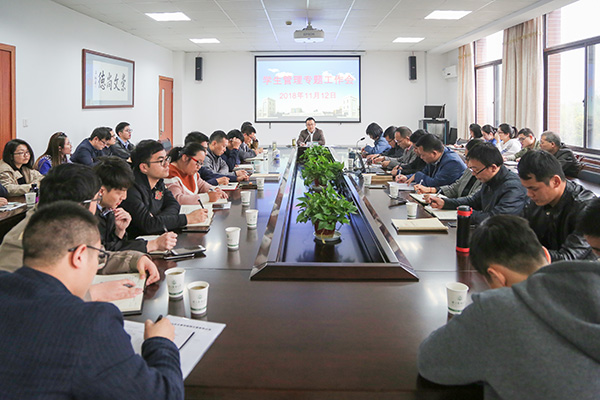 本网讯 11月13日上午,学院召开学生管理专题工作会议。党委书记潘国忠,纪委书记吴正金,党委副书记高国俊,副院长李叔君出席。