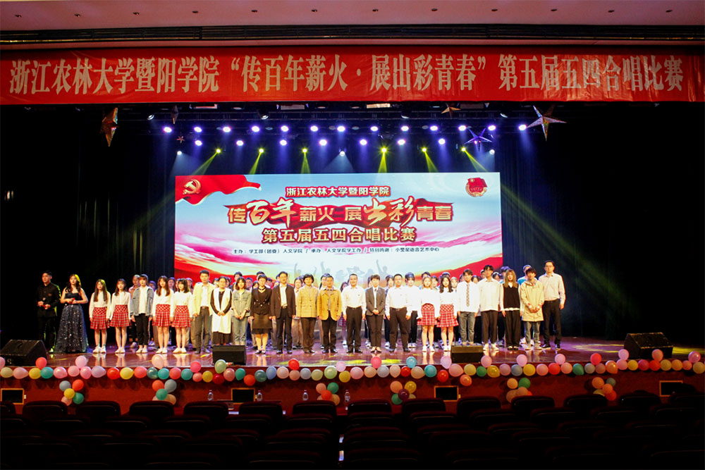 4月29日晚,金沙官网在活动中心举办“传百年薪火,展出彩青春”第五届五四合唱比赛,各二级学院及教职工代表团共七支队伍参加比赛。人文学院表演歌曲《英雄赞歌》,嘹亮的歌声唤起了慷慨报国的凌云壮志,气势磅礴的合唱搏得了现场阵阵热烈的掌声。生物环境学院代表队带来的歌曲《走向复兴》和《仰望星空》,他们唱出了青年敢于发声,勇于争先,大胆追梦的情怀;园林学院代表队演唱了《光阴的故事》和《生活不止眼前的苟且》,同学们怀念过去,见证时代变迁,又展望未来,用满腔热血迎接新的明天;晨晓艺术与设计学院代表队带来歌曲《歌唱祖国》和《中国青花瓷》,他们声音洪亮充满自信,用饱满的热情歌颂伟大祖国的繁华盛景;工程技术学院代表队所演唱的《红旗飘飘》和《怒放》,同学们慷慨激昂,唱出了对祖国的敬仰与热爱;商学院代表队表演了准备已久的节目《大中国》和《祖国,用青春的名义为您唱歌》,振奋人心的鼓声和同学们嘹亮的歌声唱出了祖国的山川湖海,盛世用存,同学们用抑扬顿挫、声情并茂的诵读声,向同学们展现了对祖国大地爱得深沉;教职工代表队带来歌曲《在灿烂的阳光下》以及《我和我的祖国》,教职工们以极具感染力的歌声带现场观众一起重温了那段激情燃烧的岁月,不仅唱出了对祖国峥嵘岁月的回忆,也唱出了对祖国未来充满希望的美好心声。