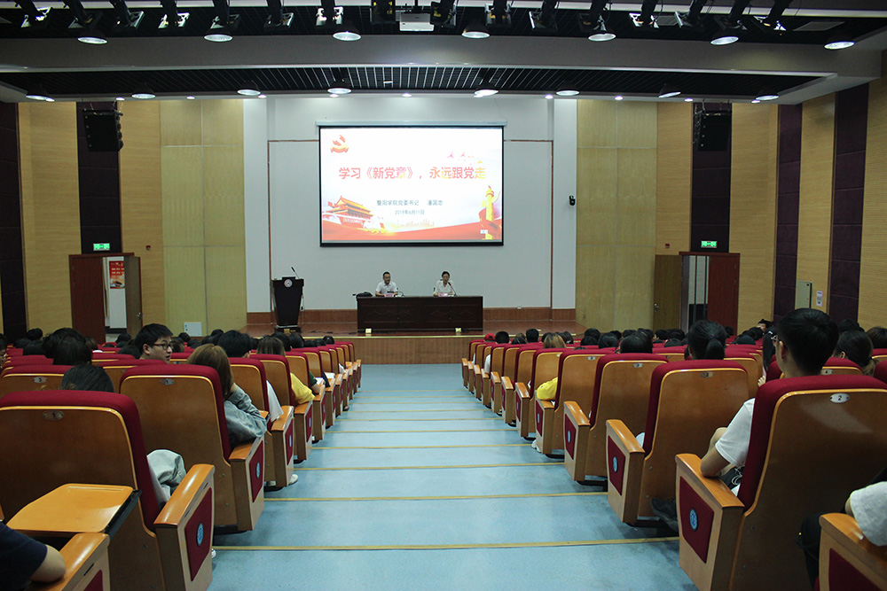 6月11日晚上,学院党委书记潘国忠为全体学生党员上《学习新党章,永远跟党走》专题党课。“党章就是党的根本大法,是全党必须遵循的总规矩。”党课从“历史沿革,彰显初心”“崭新时代,再修党章”“时代新章,引领青年”等三个维度展开。