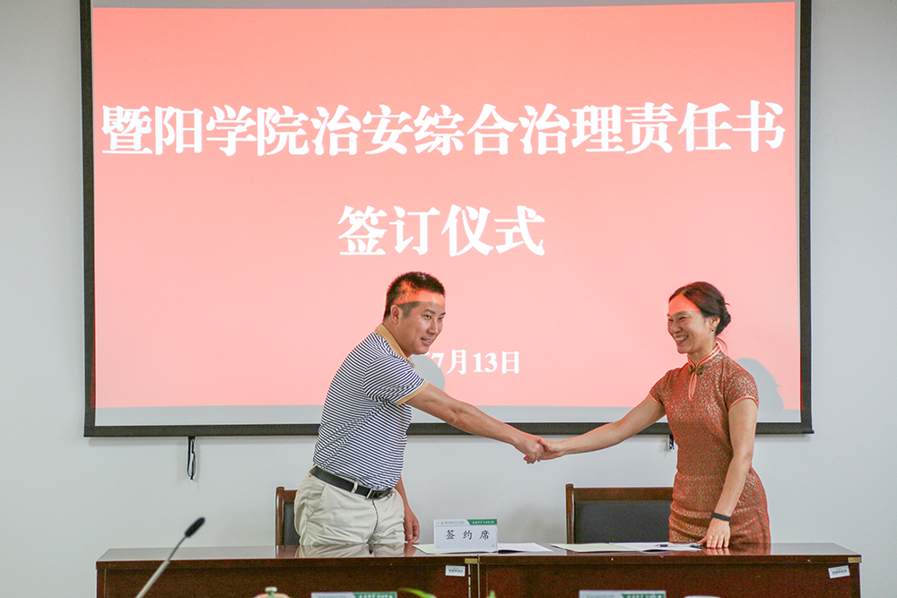 会上,徐爱俊与相关职能部门、二级学院(部、中心)代表签订了2019年校园治安综合治理责任书。