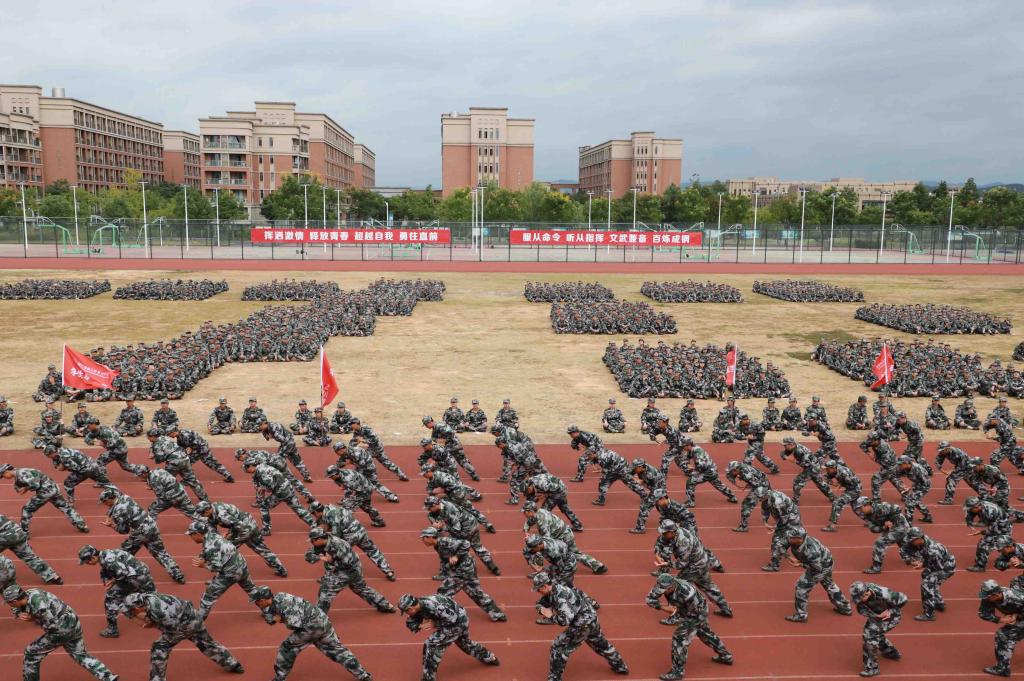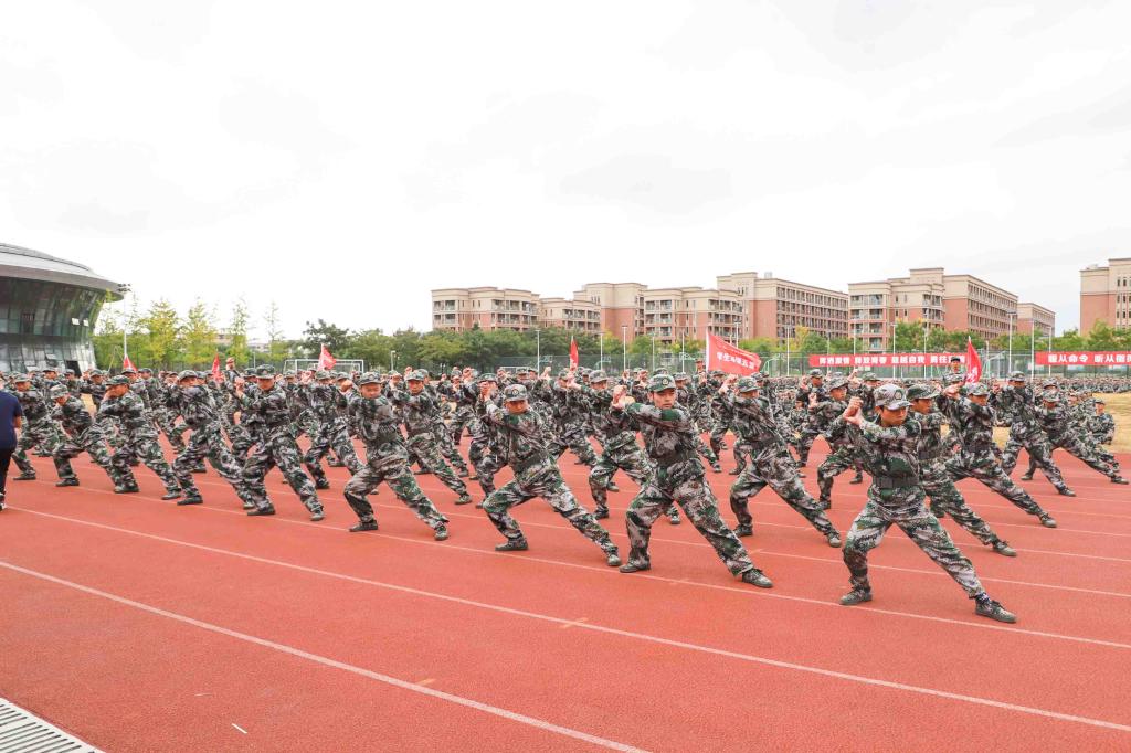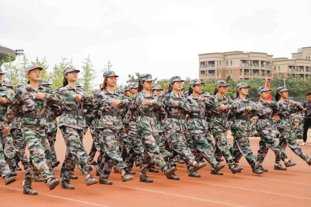军训学生代表表演了男子擒敌拳及女子队列展示;各营学生进行了分列式汇报表演。检阅中,各方阵军容严整、步伐矫健、口号响亮、军姿威武,充分展现了参训同学过硬的意志品质和军事素养。十四天的刻苦训练、十四天的挥汗如雨,同学们悉心听教,认真操练,挺拔了身姿,磨练了意志,取得了显著的成效。