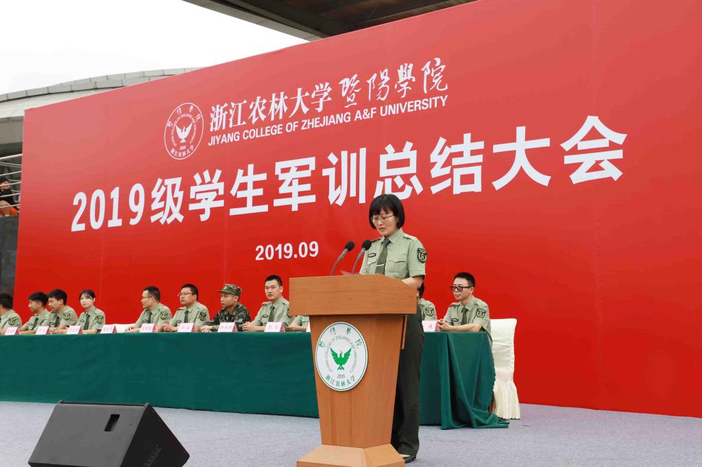学院副院长、军训团团长李叔君在大会上发表讲话。她衷心的希望同学们铭记这段难忘的军训历程,把军训这种饱满的热情、顽强的毅力、必胜的信心带到学习、工作和生活中去,充分发扬“求真敬业,经世致用”的院训精神,把军训成果转化为优良的学风、校风,学会担当,不断进取,不断开创美好的未来。