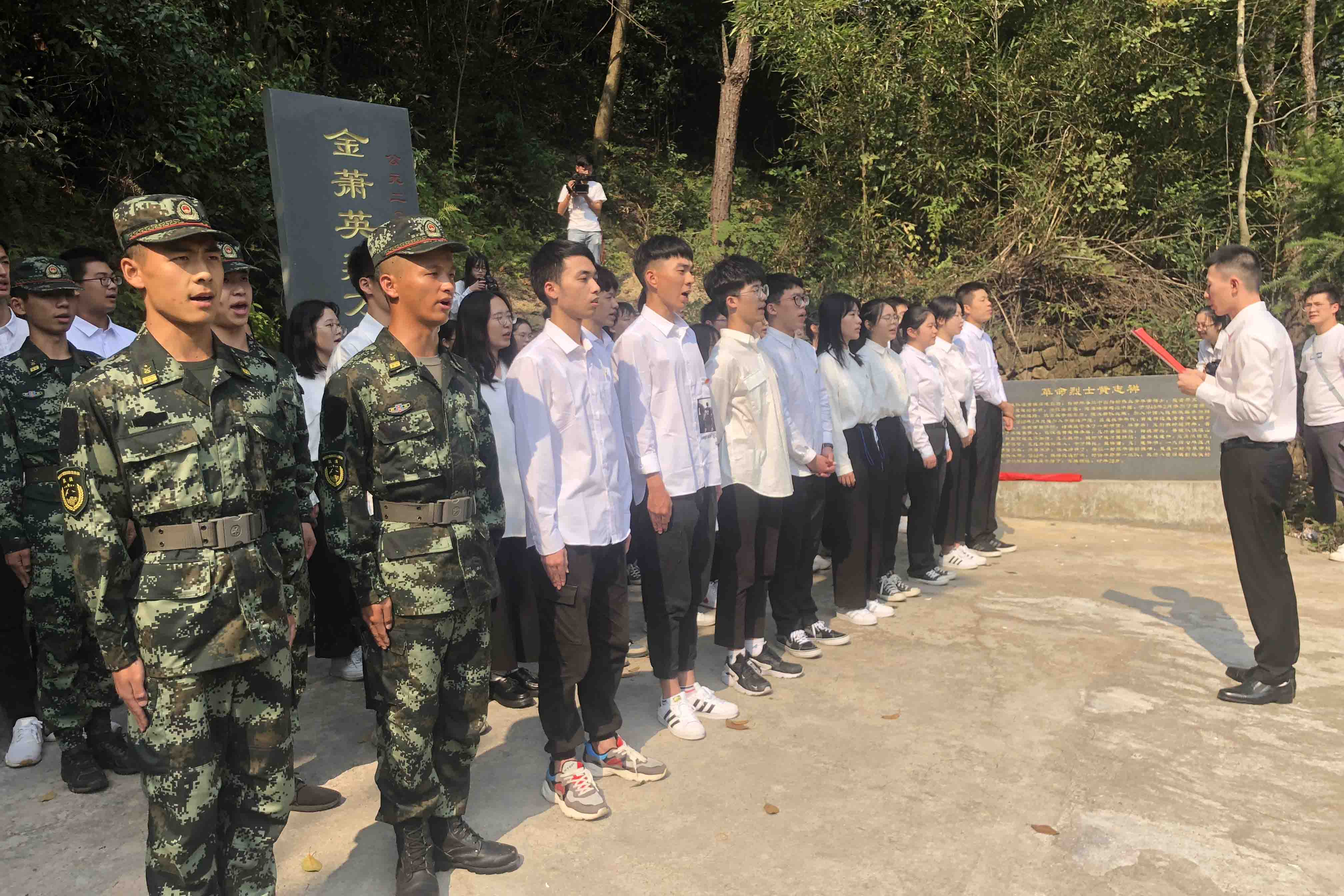 9月26日下午,在第二个烈士纪念日即将到来之际,学院团委组织学生前往诸暨市璜山镇黄家店村金萧支队英烈纪念碑、纪念馆开展“梦萦今宵忆往昔,魂牵国诞念今朝”为主题的红色教育活动,传承红色基因、弘扬革命精神、喜迎70华诞。