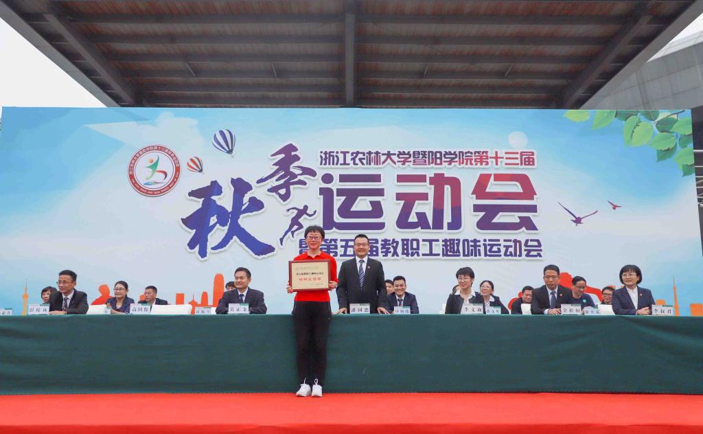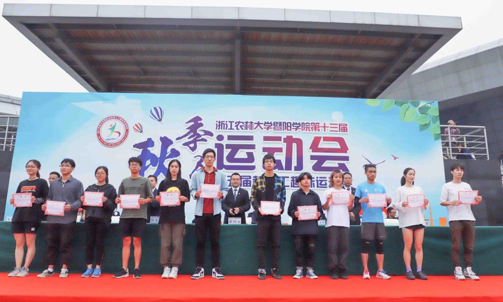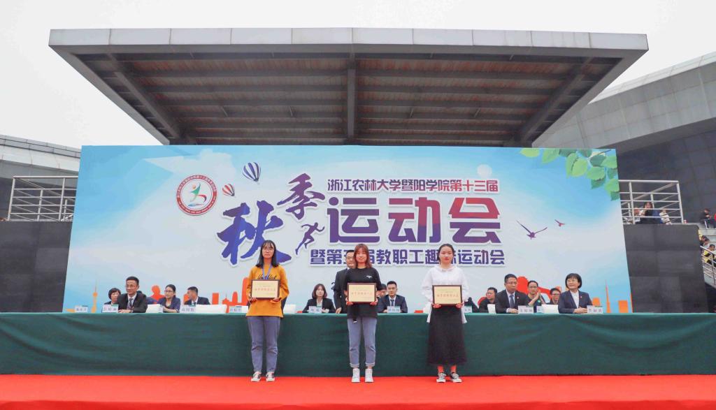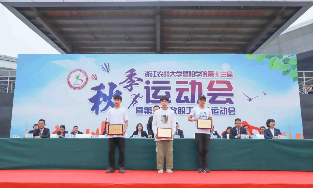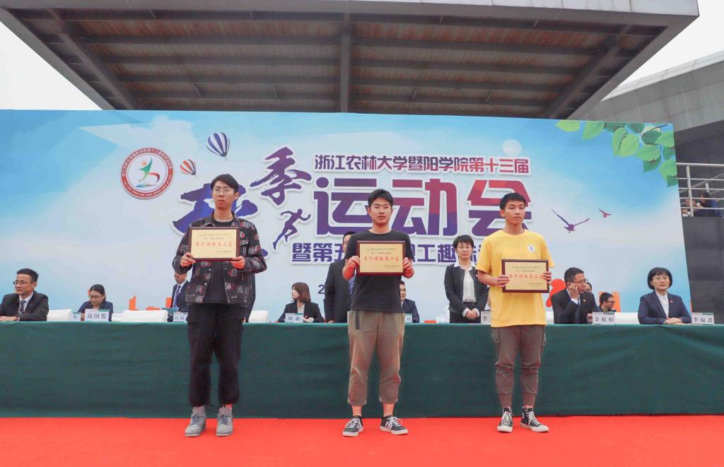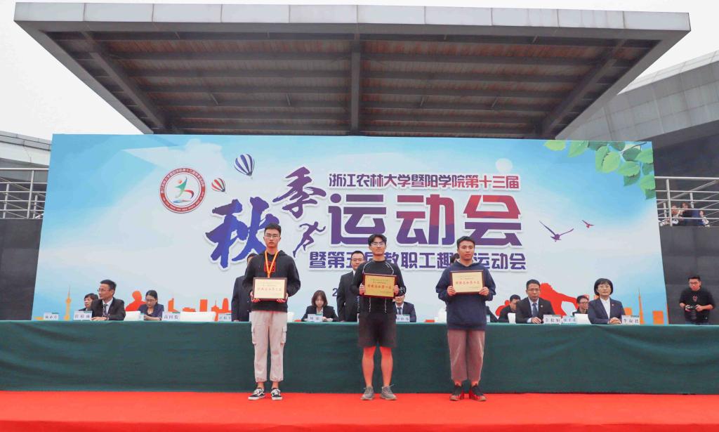 本届运动会共评选出徐昊然等12名优秀运动员。商学院、工程技术院、人文学院分别获得男女团体总分前三名,工程技术学院、商学院、园林学院分别获得男子团体总分前三名,商学院、人文学院、工程技术学院分别获得女子团体总分前三名。工程技术学院,园林学院,生物环境学院和晨晓艺术与设计学院分别获得教职工趣味运动会团体前三名。比赛期间,学院领导和组委会成员还为获得各项比赛前三名的团体、个人颁发了奖牌。