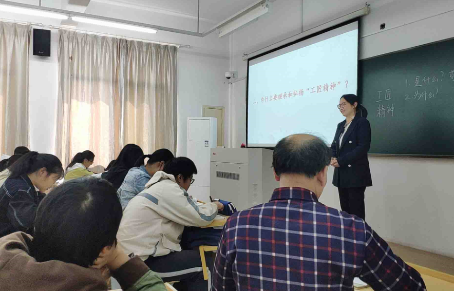 与会人员现场观摩了思政课青年教师陈婵关于《思想道德修养与法律基础》第三章第一节“中国精神是兴国强国之魂”的微课,并进行了评课和研讨。