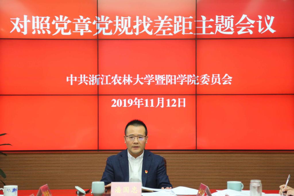 11月12日下午, 学院党委在行政302召开对照党章党规找差距主题会议。学院党政班子成员出席会议。党委书记潘国忠主持会议。