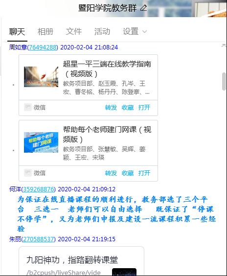 线上教学开课以来,教师们根据当前形势,通过在各课程平台音视频直播、录播等方式授课,主动对教学资源和教学安排等方面做了适当调整,发布了开课公告或学习公告,在讨论区也发布了讨论主题。学生们按照课表,及时参加到所学课程的在线学习,有的课程甚至还吸引了校外的学生来参与。线上的教学方式,更方便了师生互动交流,学生积极参与讨论区的交流,讨论帖子也得到老师的及时回复和解答。
