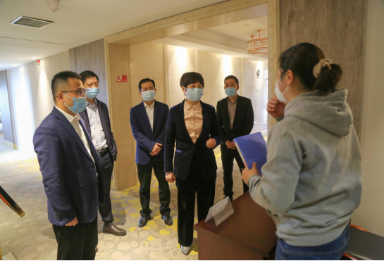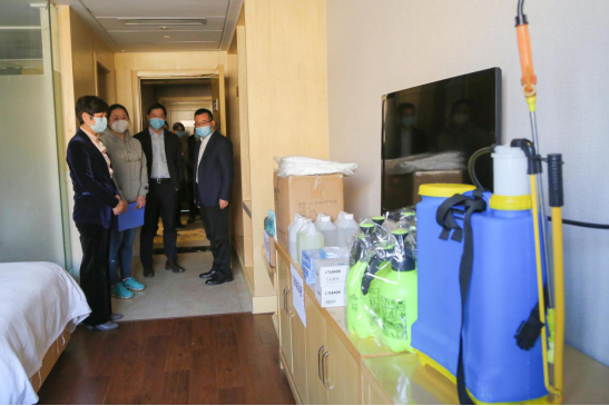 郭丽华一行实地查看了集中医学隔离观察点、心理咨询室、食堂、校门等场所,对学校隔离措施、宿舍管理、就餐环境、物资储备、日常排查、应急预案、在线教学等各方面工作进行了深入了解,并就强化组织领导、校园管控措施、统筹推进开学工作、防控物资采购等问题进行了认真指导。