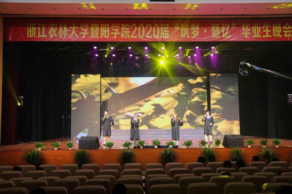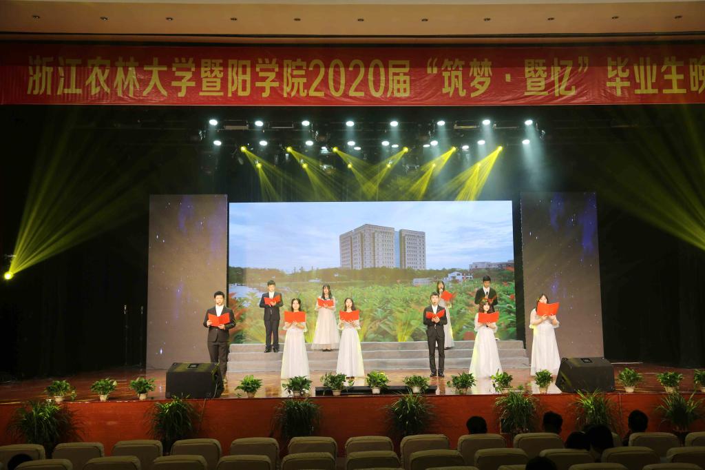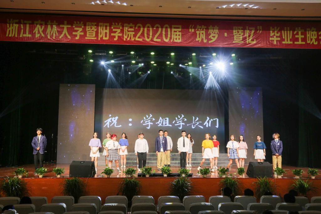 6月29日晚,浙江农林大学金沙2004路线js52020届《筑梦·暨忆》毕业生晚会在活动中心影剧院举行。学院领导徐光辉、潘国忠、李文莉、吴正金、高国俊出席晚会。