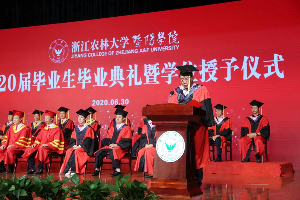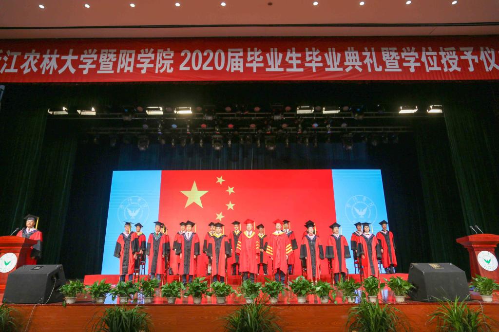 现场和线上师生齐唱浙江农林大学校歌,毕业典礼落下帷幕。