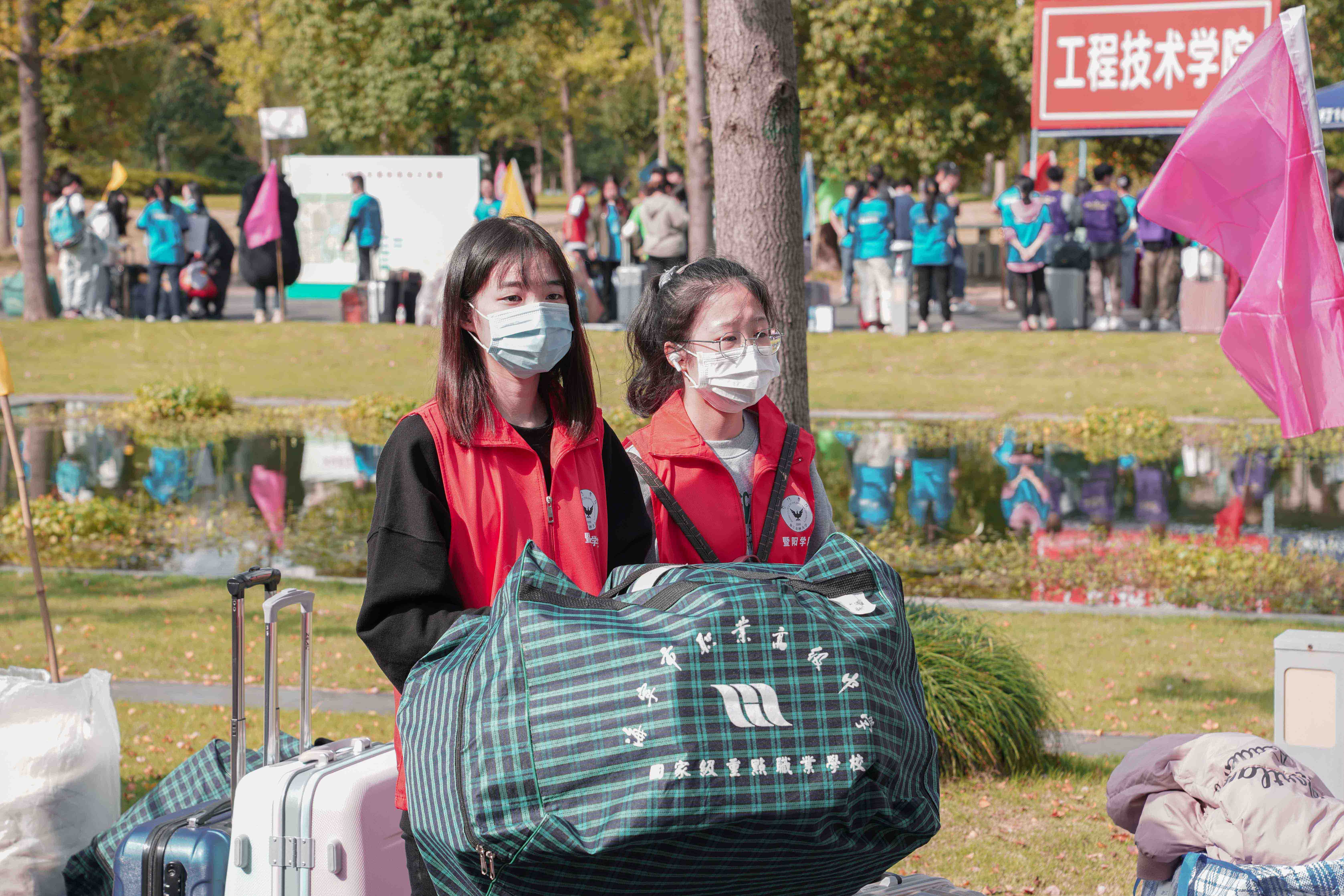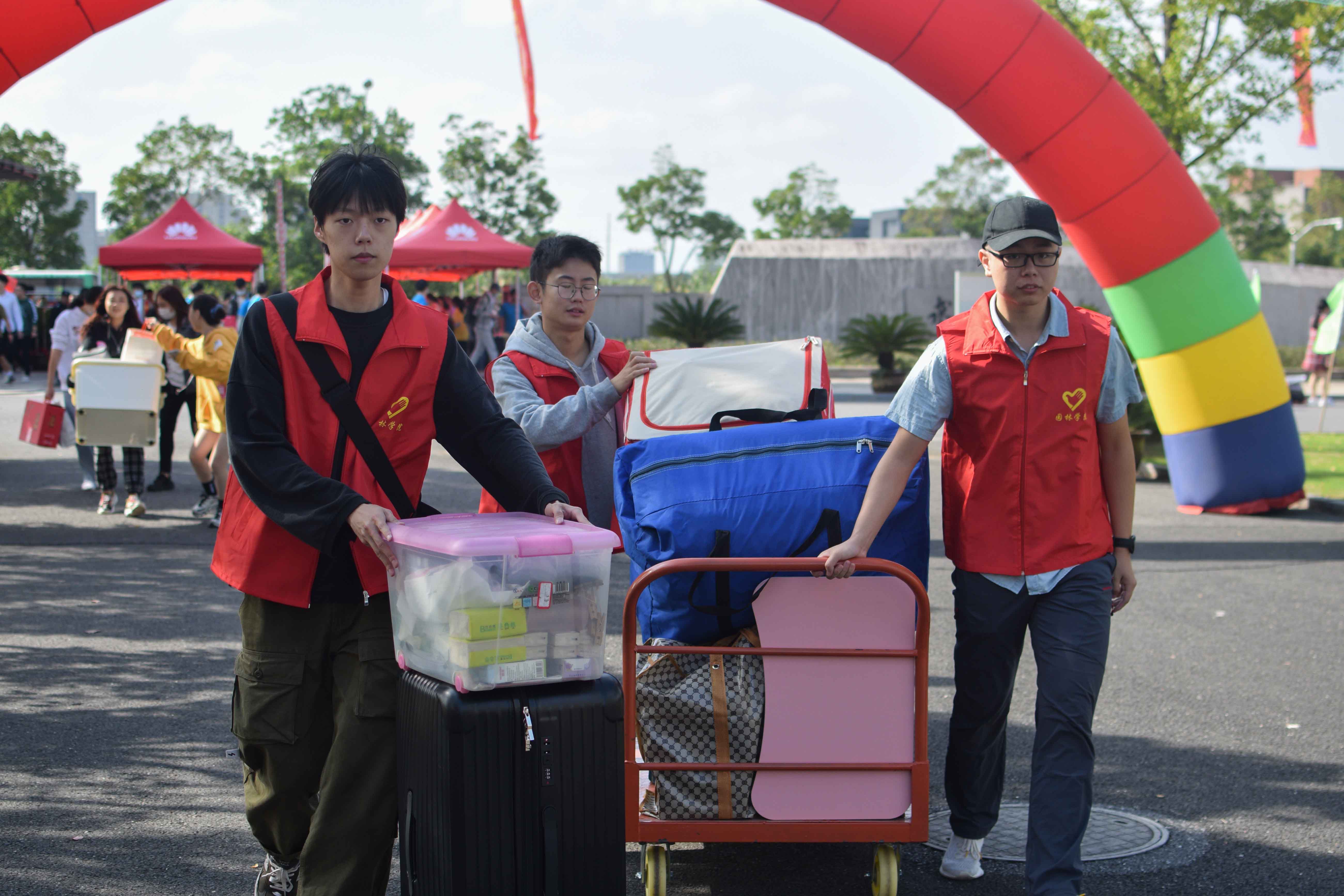 身着红马甲的志愿者们踩着清晨第一缕阳光抵达诸暨市火车站、汽车站等接站迎新,满怀热情,用笑容迎接莘莘学子,为新生提供周到的报到咨询、校园引导、行李搬运等志愿服务。