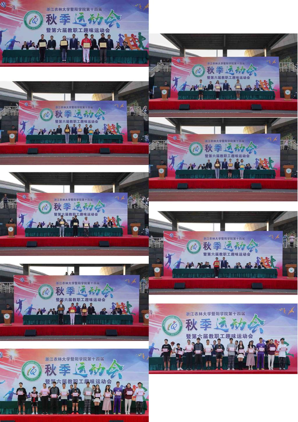 本届运动会共评选出白佩婷等12名优秀运动员。商学院、工程技术院、生物环境学院分别获得男女团体总分前三名,工程技术学院、商学院、园林学院分别获得男子团体总分前三名,商学院、生物环境学院、人文学院分别获得女子团体总分前三名。机关第一分工会,工程技术学院,机关第二分工会分别获得教职工趣味运动会团体前三名。比赛期间,学院领导和组委会成员还为获得各项比赛前三名的团体、个人颁发了奖牌。