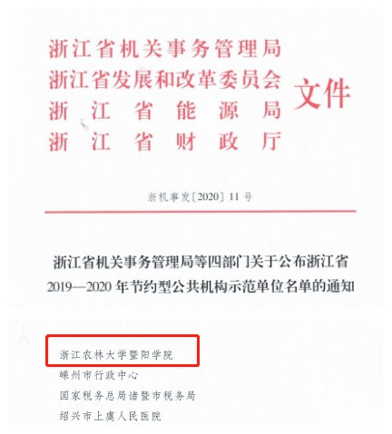 近日,浙江省机关事务管理局等四部门发文对全省2019-2020年公共机构节能工作考核结果进行了通报,金沙官网获评“浙江省2019-2020年节约型公共机构示范单位”称号。