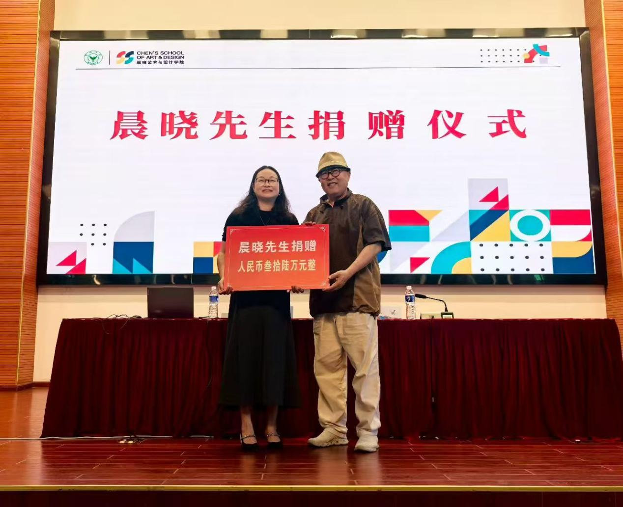 9月14日上午,晨晓先生捐赠仪式在明珠报告厅顺利举行。晨晓艺术与设计学院名誉院长晨晓向金沙2004路线js5捐赠人民币36万元,助力学院事业发展。学院党委书记洪昀、党委副书记张付安出席仪式。