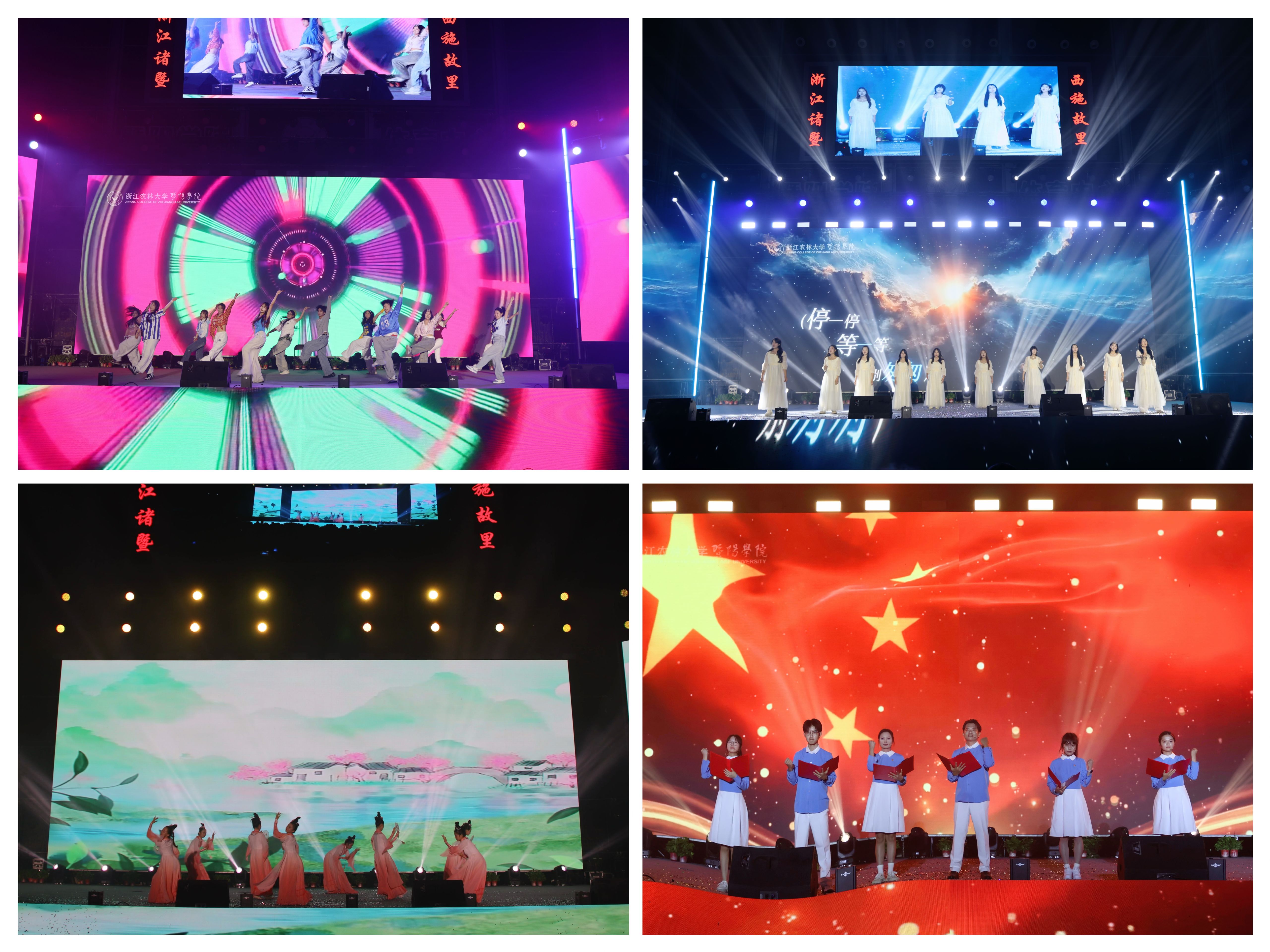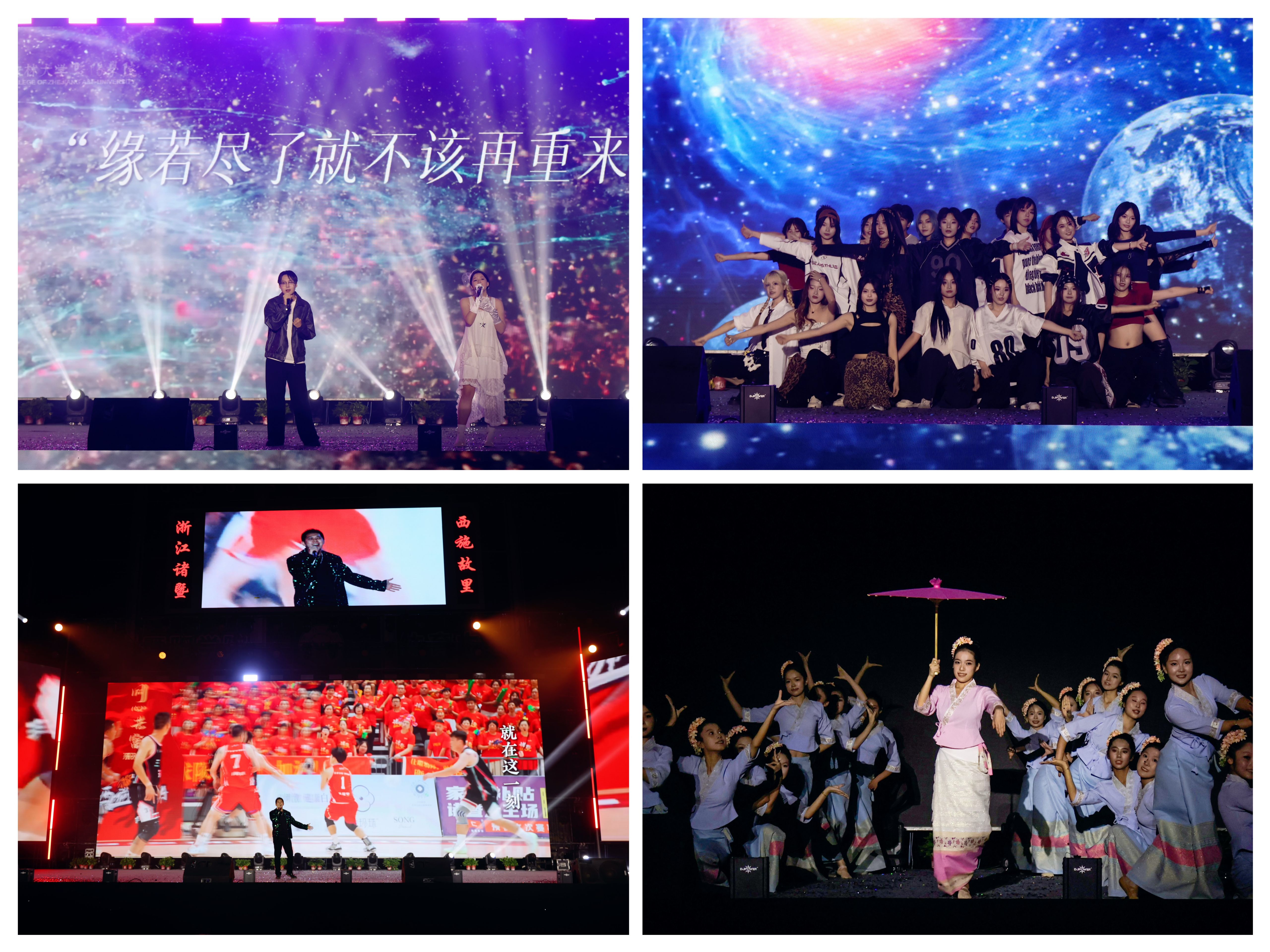 音乐类节目中,《追梦赤子心》《山河》等曲目旋律悠扬动人,不仅唤醒了现场观众的情感共鸣,更以激昂的曲调唱响了新时代青年的理想与担当,拉开青春序曲的精彩篇章;舞蹈类节目同样看点十足,《Fighting》《舞动青春》两支舞蹈以强劲的节奏、利落的动作和饱满的热情,将青年群体的蓬勃朝气与昂扬姿态展现得淋漓尽致,每一个舞姿都传递着青春的无限活力。原创舞台剧《珍珠保卫战》成为晚会的一大 “文化亮点”。作品深度结合诸暨地方特色产业和金沙官网人工智能产业学院运行现状,从产创融合的角度生动演绎了一支团队在创新创业过程中的历程,既展现了浓郁的地域特色,也为整场晚会注入了独特的文化内涵,赢得现场阵阵掌声。随后登场的诸暨特别节目《就在这一刻》,凭借贴近本土的情感表达、极具感染力的舞台呈现,成功点燃全场观众的热情,将晚会氛围推向高潮。