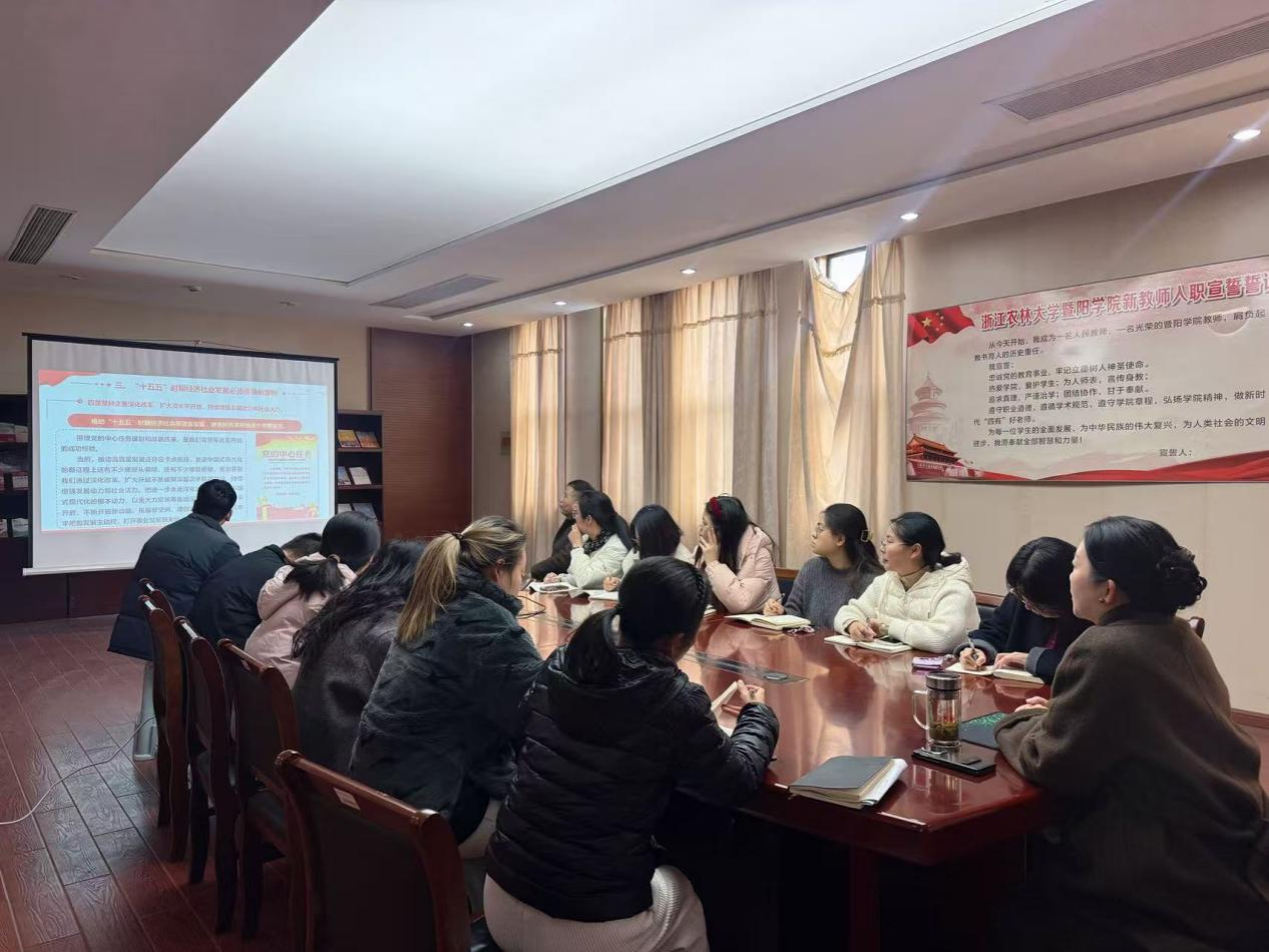 洪昀回顾了“十四五”时期我国经济社会发展取得的重大成就,强调这些成就是在党中央坚强领导和习近平新时代中国特色社会主义思想科学指引下取得的;随后解读了“十五五”时期的指导思想、主要目标及必须坚持党的全面领导、人民至上、高质量发展等原则。洪昀强调,要坚持立德树人,将全会精神融入教育教学全过程,坚持教育、科技、人才一体化发展,将全会精神贯彻落实到机关党建与业务工作中。全体党员要进一步提高政治站位,强化责任担当,不断提升管理服务水平,切实将学习成果转化为推动学院事业发展的实际行动。