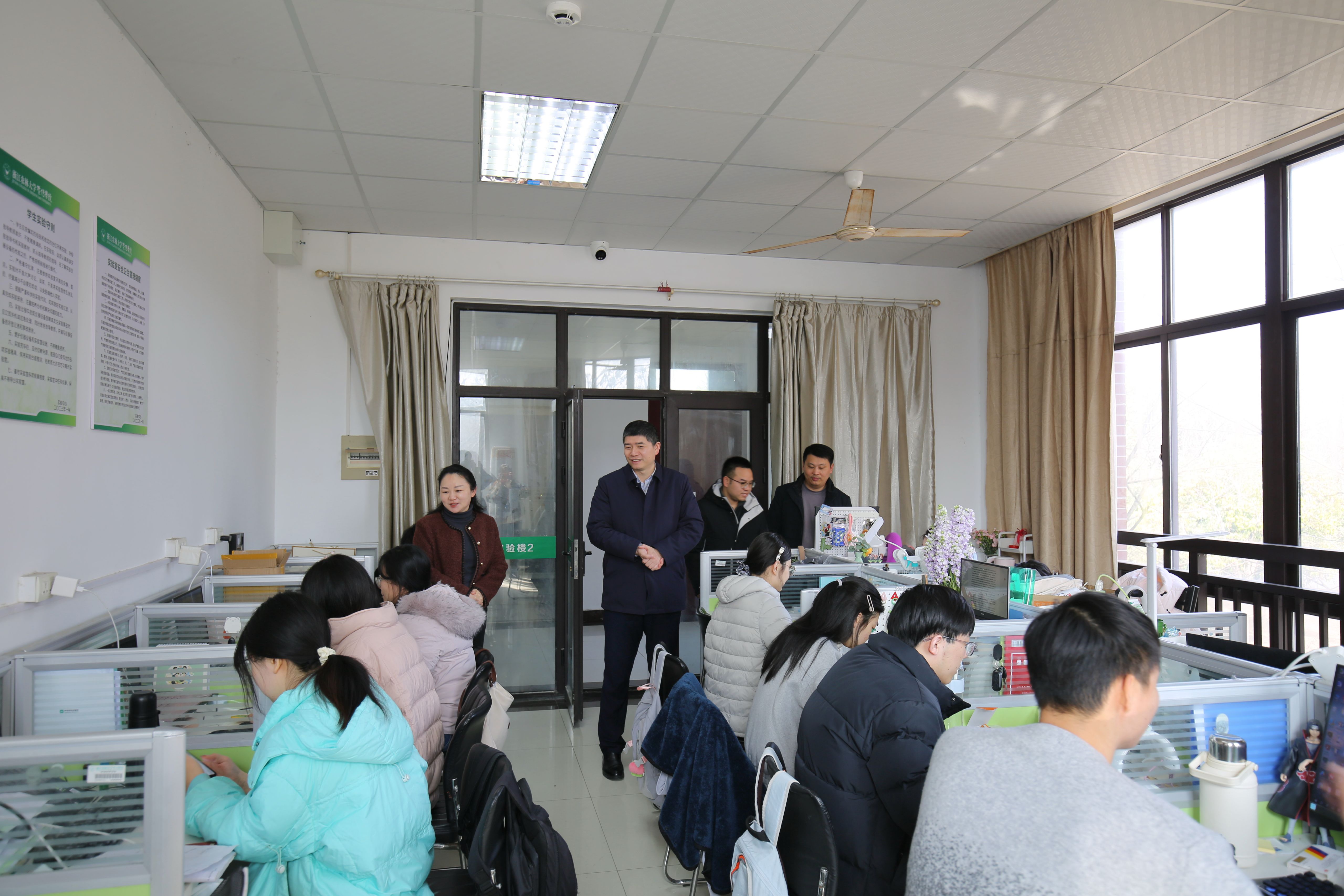在实验楼,学院领导与留校学生温馨交流,细致询问同学们假期的学习、生活情况,鼓励大家合理安排时间,注意劳逸结合,保持积极健康的身心状态。同学们纷纷表示,学院周到的安排与细致的关怀让他们感受到了家一般的温暖。