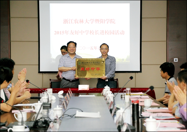 为积极应对考试招生制度改革和学院迁址更名新形势,搭建沟通平台促进交流,展示学院风采塑造良好形象,5月23日,学院首次举办“友好中学校长进校园”活动。来自省内42所中学的校长及部分县市教育局的领导参加了此次活动。诸暨市副市长俞越,诸暨市教育局局长杨建波,学院领导石道金、寿韬、修树东、李文莉、张晓优、蔡永华,各系负责人和师生代表与各中学校长、代表齐聚一堂,共议教育衔接、融合,共话合作发展。会议由学院党委书记寿韬主持。