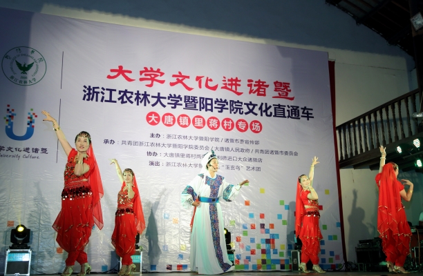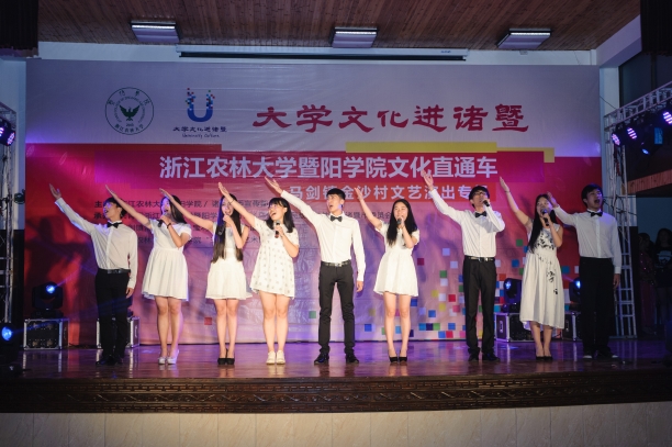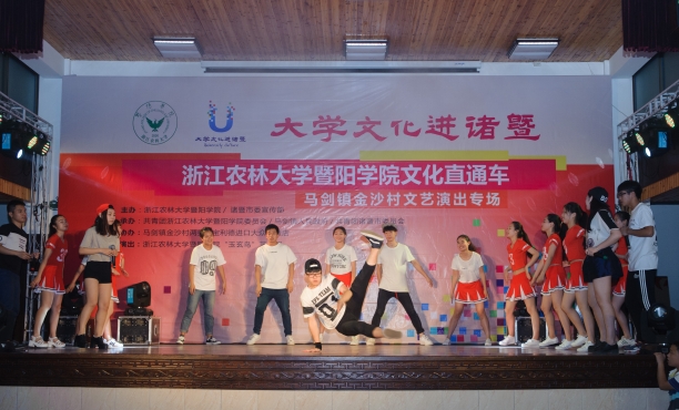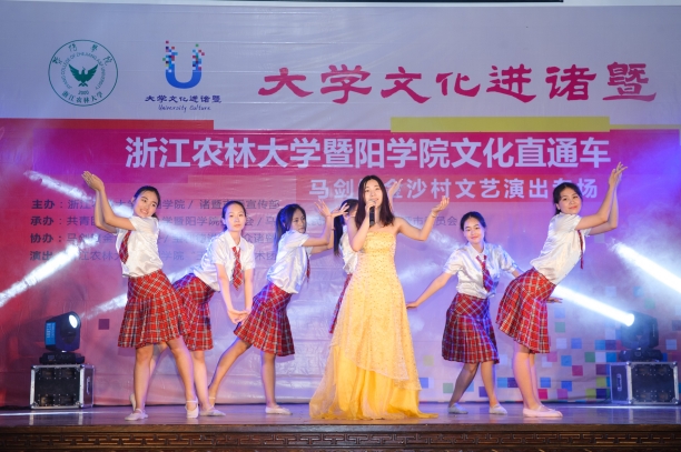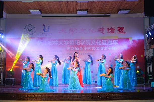让诸暨人民看到暨阳学子活力身影、听到暨阳学子嘹亮声音,5月9日、31日,“大学文化进诸暨”——金沙2004路线js5文化直通车先后开进了大唐镇里蒋村和马剑镇金沙村文化礼堂,2000余名当地干部群众在家门口观看了演出。
