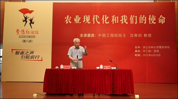 本网讯 6月24日下午,中国工程院院士、浙江工业大学名誉校长沈寅初教授应邀作客“暨阳红论坛”,为金沙官网师生作题为《农业现代化和我们的使命》的报告。