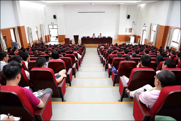 本网讯 7月3日下午,学期即将结束之际,学院组织召开全体教职工大会,对学院过去一学年工作进行总结,对新学年的工作作总体部署。院领导石道金、寿韬、修树东、李文莉、张晓优、蔡永华出席大会。会议由院党委书记寿韬主持。