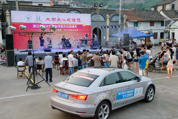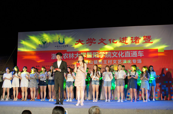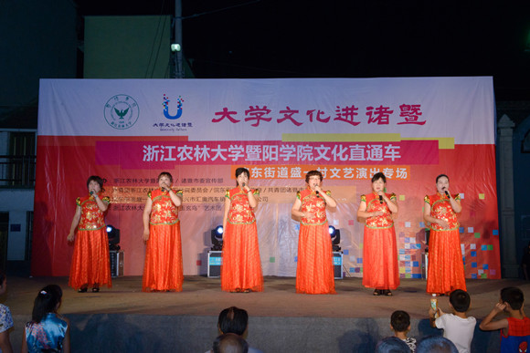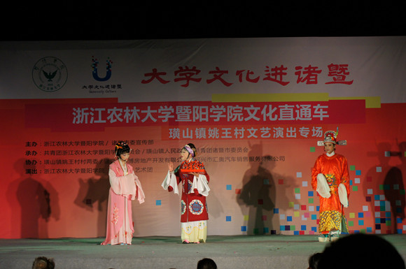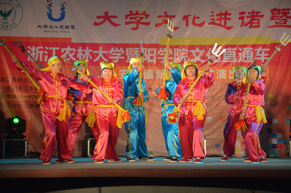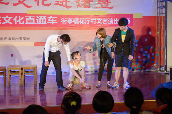 据悉,自去年金沙官网启动实施大学文化进诸暨“五个一工程”(一辆文化直通车、一个暨阳红论坛、一支高水平篮球队、一批地域特色文化精品、一套志愿服务体系)以来,“文化直通车”作为领衔项目,已先后开进店口、山下湖等诸暨19个乡镇、街道,万余名干部群众在家门口观看了演出,迅速成为了诸暨市民喜闻乐见、耳熟能详的响亮文化品牌。