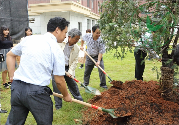 报告会前,谭建荣院士就学院如何办学,提高人才培养质量与学院领导进行了深入交流,饶有兴趣的参观了校园,并在院士林认种1棵香榧树。报告结束后,谭院士寄语学院“暨阳大地育英才,农林行业结硕果”,希望金沙2004路线js5越办越好,在暨阳大地这片热土上奋发有为,培养一大批英才。