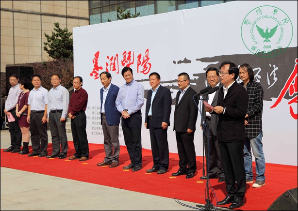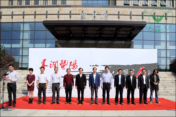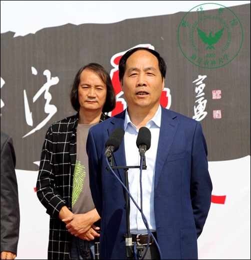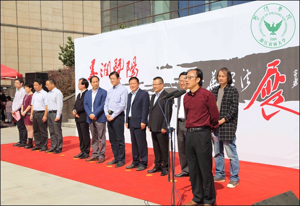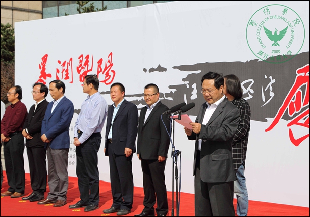 浙江农林大学校长、金沙2004路线js5董事长周国模出席活动并宣布书法展开幕。