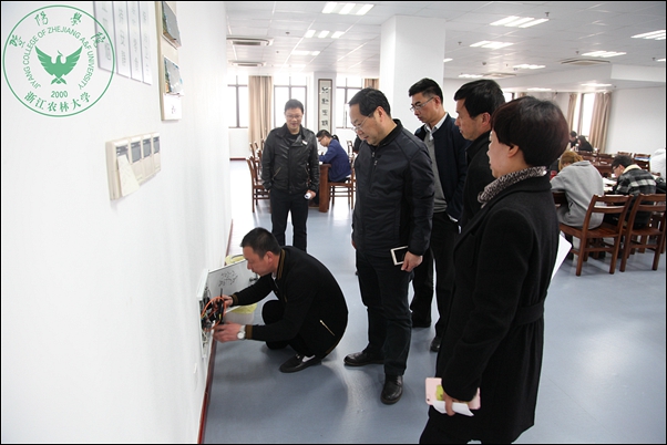院长石道金,副院长张晓优带队前往学院消监控室、门卫室、图书馆、配电房、超市、营业房、食堂等场所开展检查,院党委书记寿韬,副院长修树东带队实地检查了实验中心、体育中心、活动中心、学生公寓、公共区域等场所。