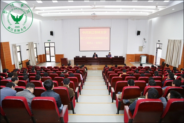 金佩华从三个方面对学校第二次党代会的主要内容和精神进行了宣讲。他用“三个突破”、“三个率先”、“八大图强”,精辟地总结了五年来学校建设发展所取得的主要成果;结合“两山”理论、“两美”浙江、“两创”、“两转”、“一廊两城十小镇”等几个要素,充分展示了学校创建生态性创业型大学的道路自信和使命自觉;解读“八个如何看待”,生动阐述了学校党委贯彻“五大发展理念” 的未来发展战略布局。他通过理性实效的分析,利用自身丰富的经验,结合学校党委的要求,用风趣幽默的语言,为全体教职工作了一场精彩生动、极具艺术性的报告。