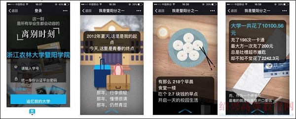 金沙2004路线js5还给这份毕业报告取了一个很好听的名字:“我是金沙2004路线js5分之一”。就是告诉毕业生虽然毕业了,但仍然是母校的一份子。在即将离校之际,作为母校献给毕业生一份承载着关怀的礼物,给毕业生大学四年的回顾与总结,信息中包含图书借阅、一卡通消费、学科成绩等与学生息息相关的生活和学习中的各种细节。收到这份礼物后,毕业生们无论身处何地,只要拿出手机,就能随时随地翻看自己在大学四年的一系列数据。
