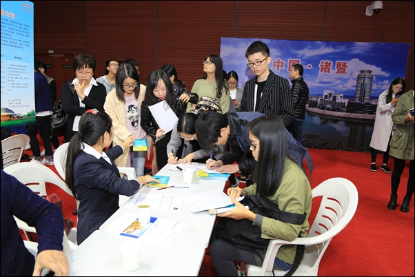 “求职何必去远方,就业创业在暨阳”、“搭建政校企合作平台,服务大学生就业创业”……11月2日下午,学院学工部联合诸暨市委组织部、市人力资源和社会保障局共同举办的2017届毕业生校园招聘会在学院网球馆举行。