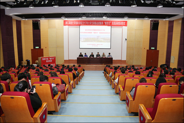 1月3日,学院2017年大学生寒假志愿服务“暖冬行”实践活动启动仪式在图书馆报告厅举行。诸暨市红十字会相关负责人、学工部(团委)负责人,相关企业代表,各系分团委书记以及寒假志愿服务实践团队师生代表参加了活动。