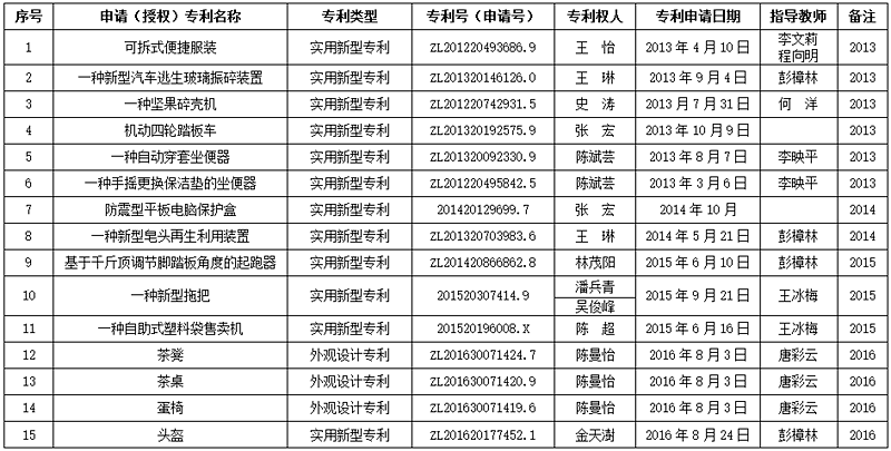 2013-2016年学生专利一览表