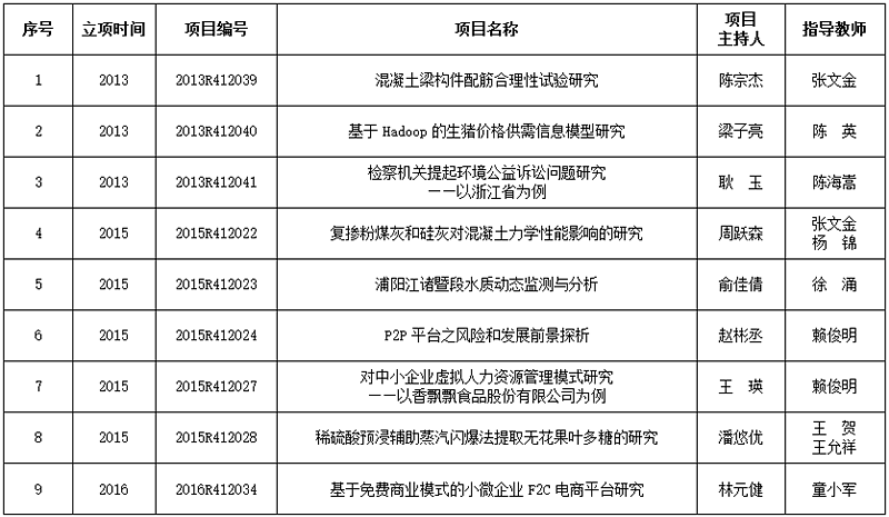 2013-2016年省级科技创新项目一览表