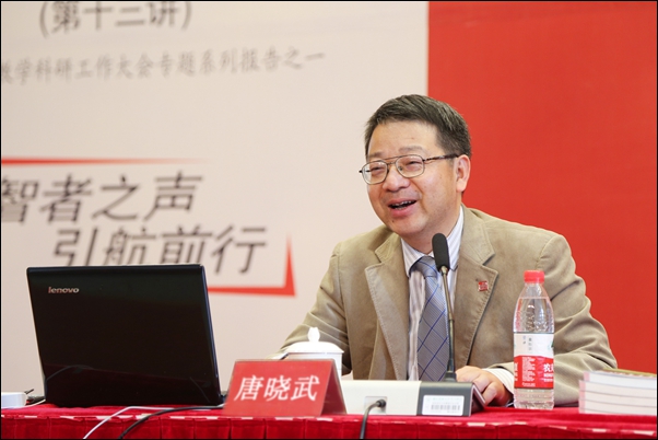 本网讯 4月13日下午,“暨阳红论坛”第十三讲暨第二次教学科研工作大会专题系列报告在明珠报告厅举行,浙江大学竺可桢学院副院长唐晓武教授作题为《认识自己、点燃人生、服务社会》的专题报告。学院党委书记寿韬出席活动并主持报告会。全体辅导员,青年教师,各系学生代表共同聆听报告会。