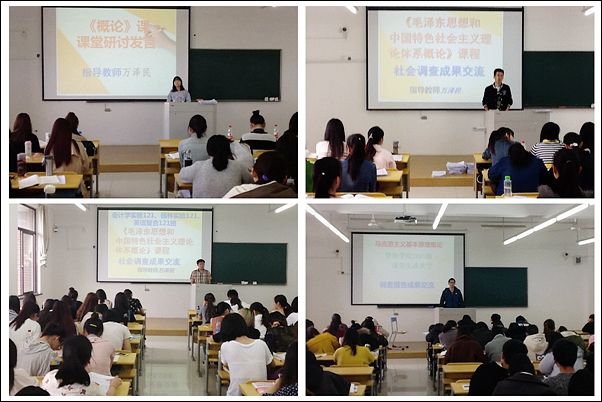 思想政治理论课作为对大学生进行德育的主渠道、主阵地和基本环节,它直接影响高校思想政治教育的实效性,是高校立德育人的基本保证。公共基础课教学部坚持以推行体验式教学为突破口,理论教学、校园文化、社会实践活动三大课堂联动,注重与培养目标、与专业课程、与校园文化三结合,突出知识层面的逻辑性、能力层面的梯度性、价值层面认同性、实践层面的指向性,合力提升大学生的思想道德素质、科学文化素质以及创业创新能力等三个能力目标。