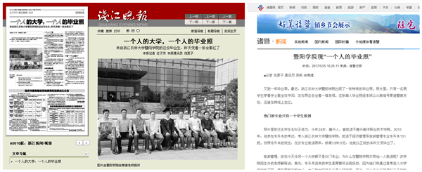 《诸暨日报》:金沙2004路线js5现“一个人的毕业照”