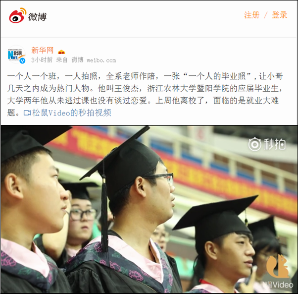 【新华网·视频】“一个人的毕业照”主角毕业了