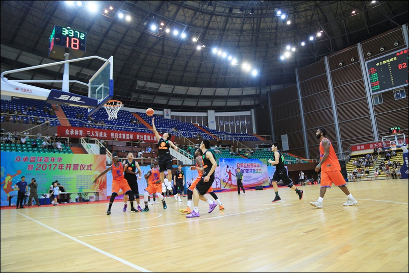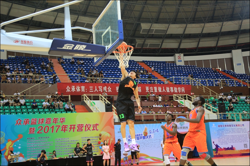 诸暨市篮球协会、体育局领导以及主办方负责人分别发言。开营仪式后,训练营中方教练携手军训教官,与外方教练上演了精彩的篮球赛事。