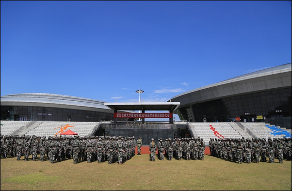 本网讯 7月11日上午,学院2016级学生军训总结大会在运动场举行。学院领导修树东,相关职能部门负责人,军训团政委、副政委,各营教导员、指导员,全体2016级参训学生参加总结大会。