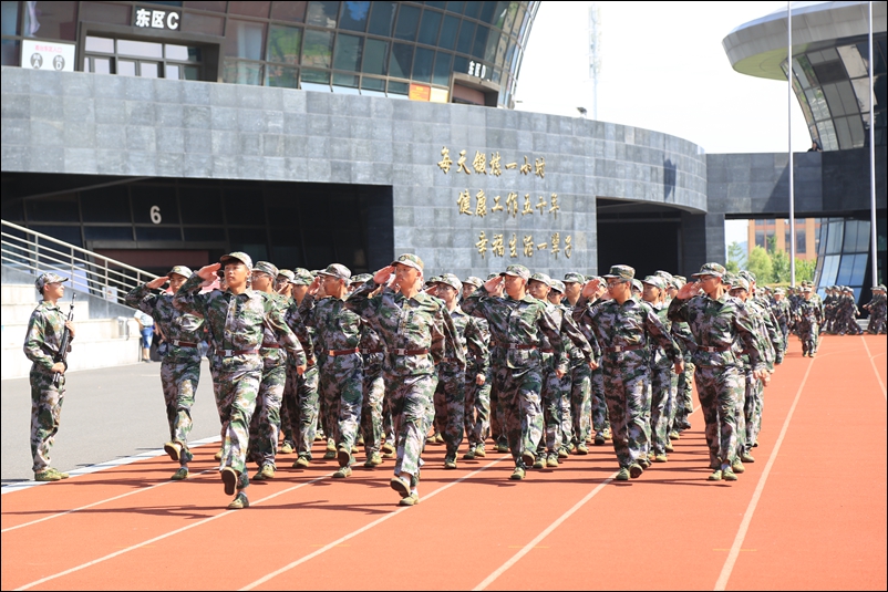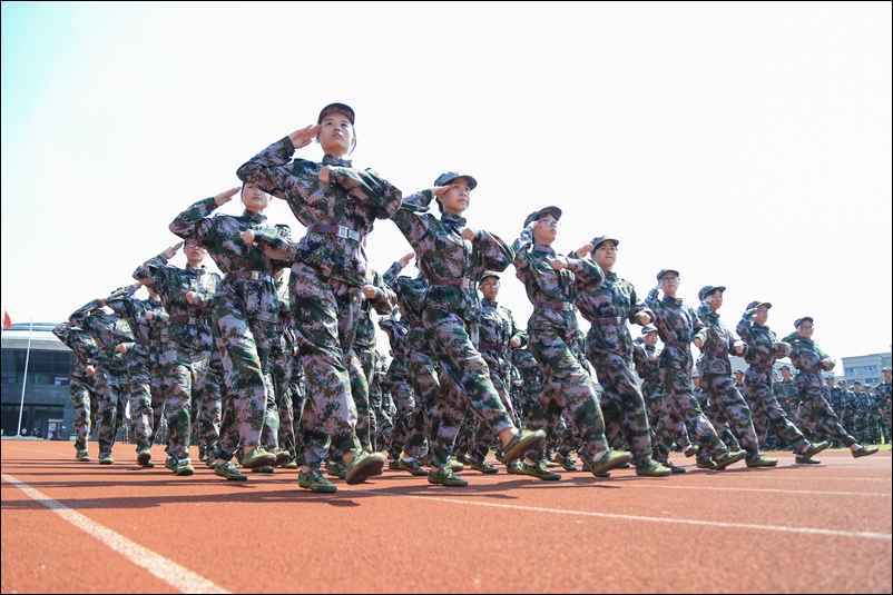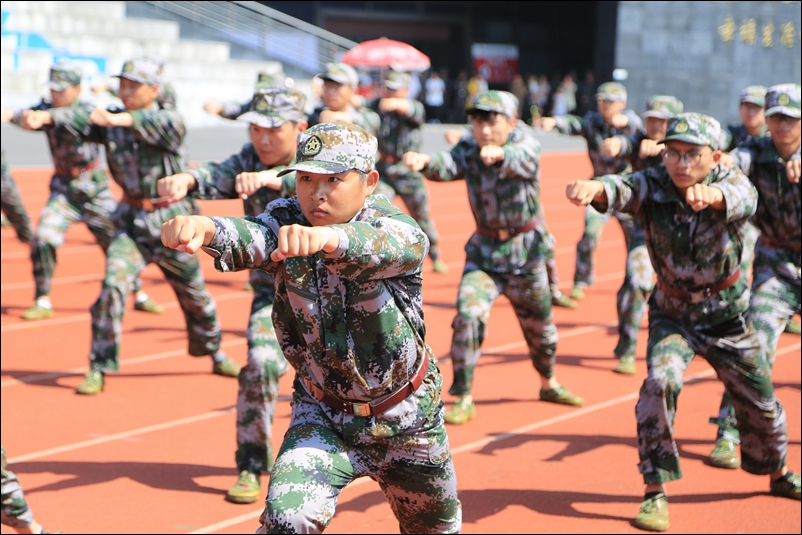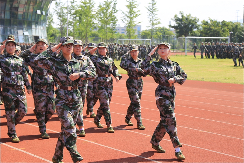 在分列式、男子擒敌拳表演和女子队列表演中,同学们用挺拔的军姿、坚定的表情、整齐的动作、响亮的口号,汇报了11天军训的成果,充分展示了同学们过硬的军事素质和良好的精神风貌,为本次军训交上一份圆满的答卷。