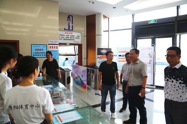 在体育中心,院领导们详看望慰问了工作人员和留校勤工俭学的学生,检查了游泳馆馆内设施。就做好水上安全、体育赛事安全等事宜提出了要求。