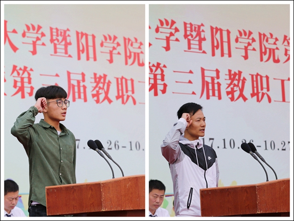经济管理系王程同学和体育军训部吕志老师分别代表运动员和裁判员宣誓。开幕式后,运动会各项比赛正式开始。