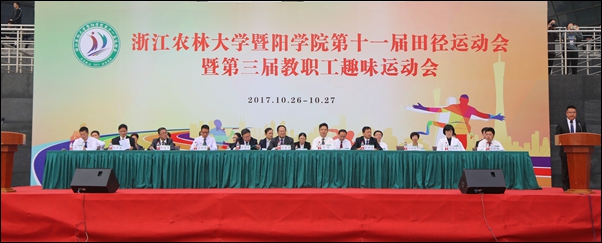 副院长金松恒在致词中代表学院向运动会的召开表示热烈的祝贺。他指出,学院十分重视体育事业的发展,特别是迁址诸暨办学以来,学院的体育文化与交流蓬勃发展,全民健身体育活动创新发展,竞技体育成绩斐然。他表示,运动会是对全院师生员工运动水平的一次集中检阅,是对学院群众性体育工作成果的一次大检验,也是对广大师生员工竞争拼搏意识、团队协作精神、顽强意志品质的一次检验,更是全院师生员工精神风貌的一次全面展示。最后,他向全体运动员、裁判员和工作人员提出了希望和要求。